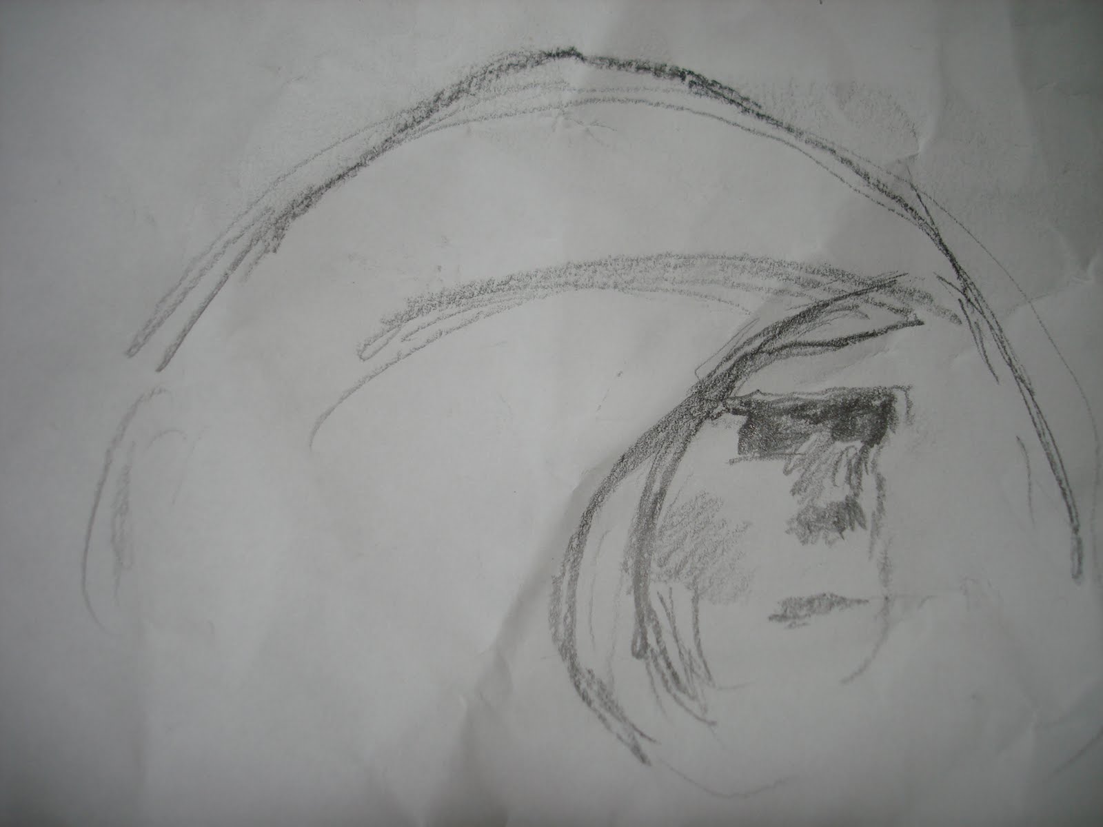 My friend Jerry posted a photo of his bowl of ice cream on Facebook. When I look at this ice cream I can see a face. Can you? Here's how I see it: To see the face you must only look at the right side of the bowl. Think of the center divide of chocolate as the dividing line of the face. Do not look at the left of the chocolate. The top right white swirl frames the persons brow line and the gaze of the person is looking right, the curve of the white continues down on the right to frame the outline of his face, so that you see a hint of his nose and a subtle whisp of a down turned mouth. I tried to draw what I see in the next picture.